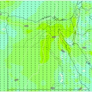 تكون الرياح شمالية إلى شمالية شرقية معتدلة السرعة، تنشط احياناً على أجزاء من سيناء وسواحل خليج السويس والقاهرة الكبرى وشمال الصعيد، وتكون مُثيرة للغبار والأتربة لاسيما جنوب مصر، وتظهر غيوم متفرقة على ارتفاعات عالية ومتوسطة في اقصى جنوب مصر.