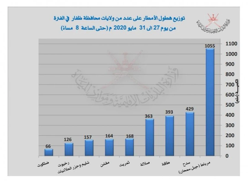وللغرابة الشديدة فإن كمية الأمطار التي سُجلت في جبل سمحان في صلالة خلال الـ 5 أيام الماضية منذ بدء تأثير المنخفض المداري والبالغة 1055 ملم تُعادل ما يهطل على العاصمة السعودية الرياض خلال 10 أعوام كاملة، حيث يبلغ المعدل السنوي للأمطار في العاصمة الرياض قرابة الـ 102ملم فقط.