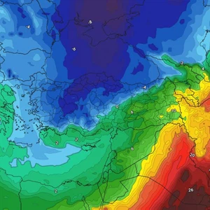 ويتوقع مع استمرار تدفق الرياح القطبية نحو شرق القارة الأوروبية أن تهبط درجات الحرارة نهاية الأسبوع إلى ما دون الصفر المئوي في مناطق واسعة من البلاد بينما تقترب درجات الحرارة من الصفر المئوي في المناطق الساحلية، بينما تتعمق البرودة بشكل كبير خلال ساعات الليل والفجر لتهوي درجات الحرارة بشكل قياسي وتنخفض إلى 10-13 درجة مئوية تحت الصفر خاصة في الأجزاء الشرقية والمرتفعات الجبلية العالية.