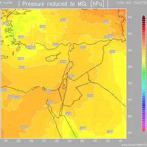 تتأثر كُل من الأردن وفلسطين يوم السبت بالنطاق الدافئ الذي يقع في مُقدمة المُنخفض الجوي،مما سيعمل على ارتفاع درجات الحرارة العُظمى بشكل واضح لتصل إلى مستوى 30 درجة مئوية في القدس وعمّان،مع سيطرة الأجواء المُستقرة والجافة، والتي ستتغير بمشيئة الله نهار الأحد.