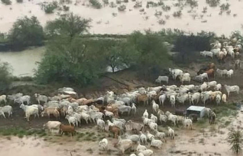 وأظهرت صور منشورة على مواقع التواصل الاجتماعي عشرات الماشية محاصرة على أراض مرتفعة تحيط بها المياه أو نافقة أو تحتضر في المياه الموحلة.