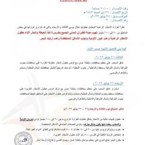 طقس العرب - سنان خلف - أصدرت الهيئة العامة للأرصاد الجوية في سلطنة عُمان التنبيه رقم 1 حول غزارة الأمطار المتوقعة على السلطنة الثلاثاء والأربعاء، وفيما يلي نص التقرير: