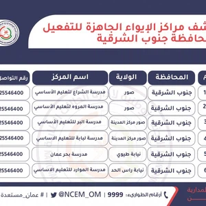 هام | اللجنة الوطنية للحالات الطارئة تعلن عن مراكز الإيواء الجاهزة للتفعيل في عدد من محافظات السلطنة
