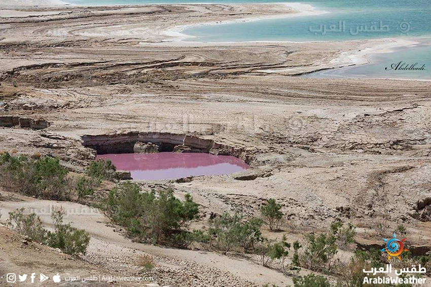 كما كشف طقس العرب أن صور الأقمار الإصطناعية ترصد منذ زمن العديد من البرك والبحيرات الممثالة التي تحمل اللون الأحمر على جانبي البحر البحر الميت، وخاصة على الجانب الفلسطيني، وهي ناتجة عن انهيارات أرضية موضعية تحدث نتيجة انخفاض وانحسار مياه البحر، وهي شديدة الخطورة لأن التربة المجاورة غالباً ما تكون ملحية ومعرضة للانهيار عند الضغط عليها.