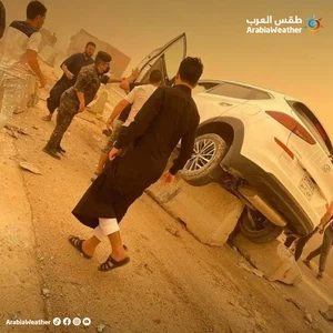 يُتوقع الساعات القادمة ان تتحرك العاصفة الرملية نحو دولة الكويت وشرق السعودية ان شاء الله، مُرفقة بتصاعد كبير على نسب الغُبار مما يؤدي إلى حدوث تدني وانعدام على حدوث تدني وانعدام على مدى الرؤية الأفقية بالاضافة الى هبوب رياح قوية ستعمل على اضطراب امواج البحر.