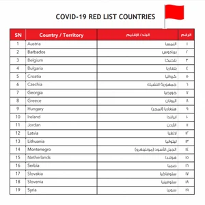 طقس العرب - أصدرت وزارةُ الصحّة القطرية اليوم الاثنين تحديثًا جديدا لقائمة السفر والعودة صنفت فيه الأردن ضمن قائمة الدول الحمراء فيما يتعلق بالحجر الصحي، وإجراءات الفحص للكشف على فيروس كورونا.
