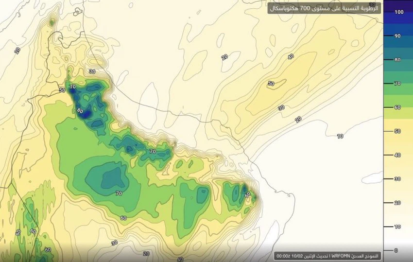 طقس العرب-تشير نماذج التنبؤات العددية إلى احتمالية تشكل سحب محلية على جبال الحجر يومي الأربعاء والخميس تؤدي لهطولات متفرقة لاجزاء من مناطق الحجر خصوصاً الغربي وجبال محافظة مسندم. أضف خبرك من هنا