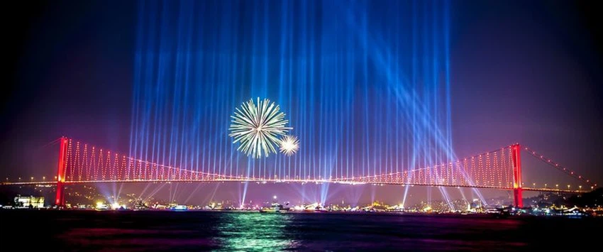 وللحصول على واحدة من أروع الإطلالات يمكنك التوجه إلى جسر البوسفور وهو من المواقع الأكثر شعبية في المدينة لمشاهدة الألعاب النارية مع أفق جميل لاسطنبول وخلفية رائعة لألوان الألعاب النارية في السماء.