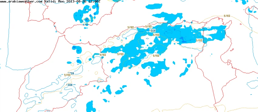 موقع ArabiaWeather.com - تُشير بيانات النماذج العددية المُختلفة إلى ان بعض المناطق في الوطن العربي ستكون بمشيئة الله على موعد مع ظروف جوية مواتية لهُطول الأمطار يوم الإثنين 26-8-2013 نُقدمها لكُم على النحو التالي:
