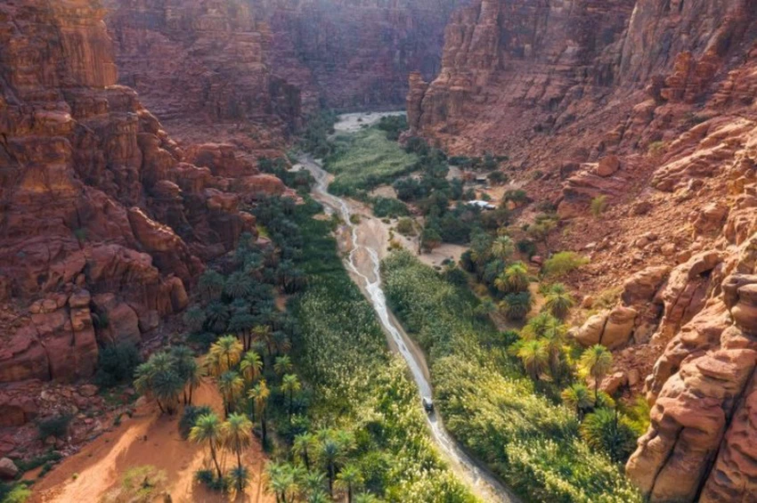 عند مفترق طرق ثلاثة أودية جنوب تبوك، تقف الأعمدة الشامخة التي نحتتها الرياح من الحجارة الرملية في وادي الديسة، وتبدو كمزيج من معلمَي "الأخدود العظيم" و"وادي النصب" في الولايات المتحدة. وتتميز المنطقة بأنها صحراوية بمعظمها، ولكن تتخلل الأخاديد واحات مع برك للمياه وأعشاب طويلة وأشجار نخيل موفرة فرصًا لا تحصى لالتقاط صور خلابة عند كل منعطف، لا سيما وقت الغروب. يمكن التنزه سيرًا على الأقدام في معظم أنحاء الوادي، أو يمكن التوجه إلى هناك بعربة رباعية الدفع.