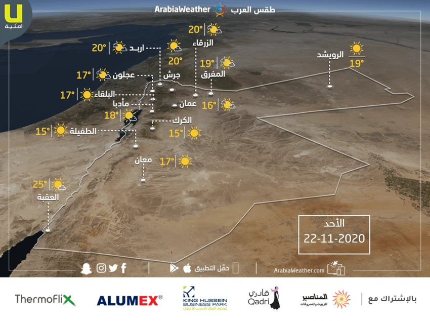درجة الحرارة العظمى المتوقعة في الزرقاء: °20