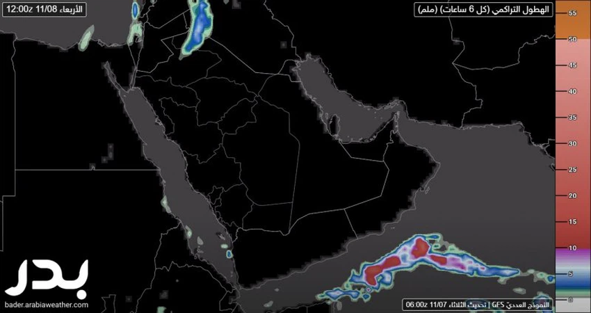 وتترافق الحالة الجوية بانخفاض على درجات الحرارة، ويُتوقع أيضًا هطول الأمطار متفاوتة الشدة على بعض المناطق في الحدود الشماليه والشمالية الشرقية يوم الأربعاء وصباح الخميس