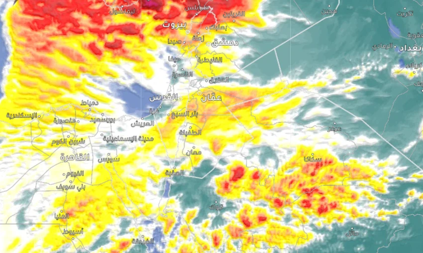 كما وتظهر صور الأقمار الإصطناعية تواجد كميات كبيرة من السحب العالية والمتوسطة في سماء المملكة، وتتهيأ الفرصة في ساعات ما بعد الظهر لهطول زخات من الأمطار في مناطق البادية الشرقية والشمالية.