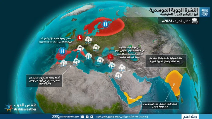 3. خريف نشط في بعض الفترات مع تشكل السحب وهطول الامطار الرعدية أحياناً.