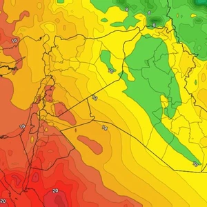 وتتأثر المملكة وعموم مناطق الحوض الشرقي للبحر الأبيض المتوسط اعتبارًا من الثلاثاء ويتزايد الأربعاء ونهاية الأسبوع بتمدد كتلة هوائية ذات درجات حرارة أعلى من المعدلات، حيث تكون درجات الحرارة خلال هذه الفترة بشكل ملموس وتكون أعلى من معدلاتها نسبةً لمثل هذا الوقت من العام بحدود 8-10 درجات مئوية.