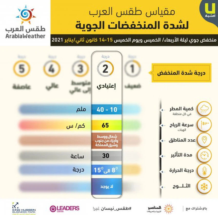 وتاليا تفاصيل الظواهر الجوية المرافقة لهذا المنخفض الجوي على المملكة :