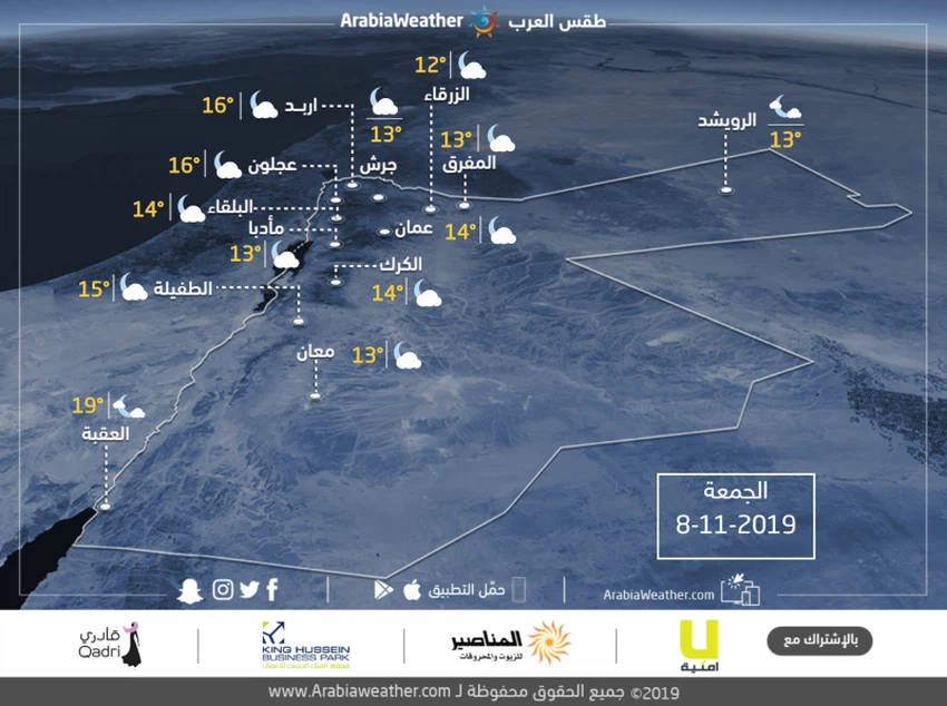 درجة الحرارة العظمى المتوقعة في الكرك: 23
