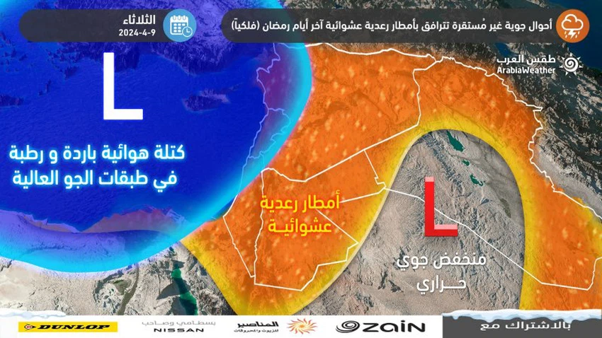 و قال المُختصون في مركز طقس العرب الإقليمي بأنه يُتوقع أن تكون بعض من هذه الزخات غزيرة في بعض الأحياء و النطاقات الجغرافية الضيقة و تترافق مع تساقط البَرَد مما قد يتسبب بحدوث ما يُسمى بالسيول المفاجئة لا سيما في المناطق المُنخفضة و المُنحدرات و الأودية و الشعاب، و الرياح تكون ما بين غربية إلى جنوبية غربية نشطة السرعة، و تؤدي إلى إثارة الأتربة و الغبار في المناطق الصحراوية. كما و أنها قد تكون مصحوبة بهبات قوية أثناء مرور السحب الركامية الرعدية.