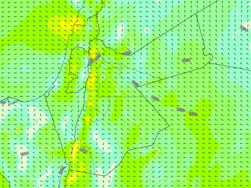 يطرأ انخفاض اضافي على درجات الحرارة لاسيما الملموسة، ويسود طقس بارد وغالبًا صافي في عموم المناطق، مع اشتداد سرعة الرياح الجنوبية الشرقية، التي تصحب بهبات قوية جدًا على الأودية و المناطق الشفا غورية والغورية إضافةً للبحر الميت وتنبيهات جدية للمزارعين في الأغوار من خطورة شدة سرعة الرياح.