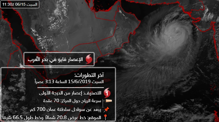 طقس العرب - سنان خلف - من المُتوقع أن تستمر قوة الإعصار فايو بالتراجع التدريجي مع استمرار حركته نحو الغرب ولا تزال التوقعات قائمة بتراجعه من الدرجة الإولى إلى منخفض مداري قبل أن يختفي تدريجياً في عرض البحر، دون أن يصل للسواحل الجنوبية من شبه الجزيرة العربية كاليمن وسلطنة عُمان.