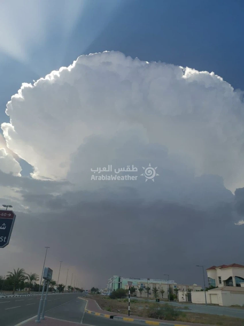 وعادةً يصحب ذلك النوع من السحب بهبوب رياح هابطة شديدة في محيطه مما يتسبب بتشكل موجات غُبارية كثيفة تؤدي إلى تدني كبير في مدى الرؤية الأفقية، ولا يُستبعد ان يمتد الغُبار لمناطق اوسع من نطاق السحب الرعدية الساعات القادمة.