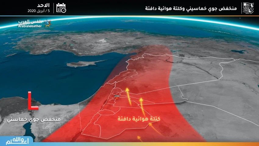 طقس العرب- يُتوقع أن تتأثر المملكة الأحد بمنخفض جوي خماسيني يترافق مع كتلة هوائية حارة وجافّة، حيث تسود أحوال جوية خماسينية.