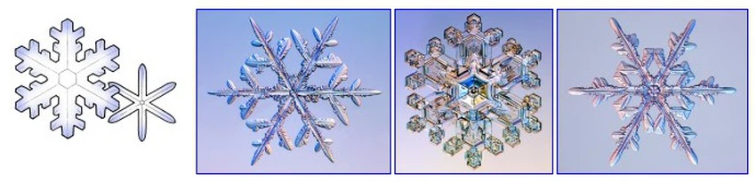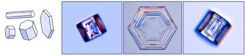 هناك العديد من الأشكال المختلفة التي تم تسجيلها للبلورات الثلجية، وهي 35 شكلاً أساسياً، وفيما يلي بعض الأشكال المذهلة التي يمكن أن تظهر فيها البلورات الثلجية: