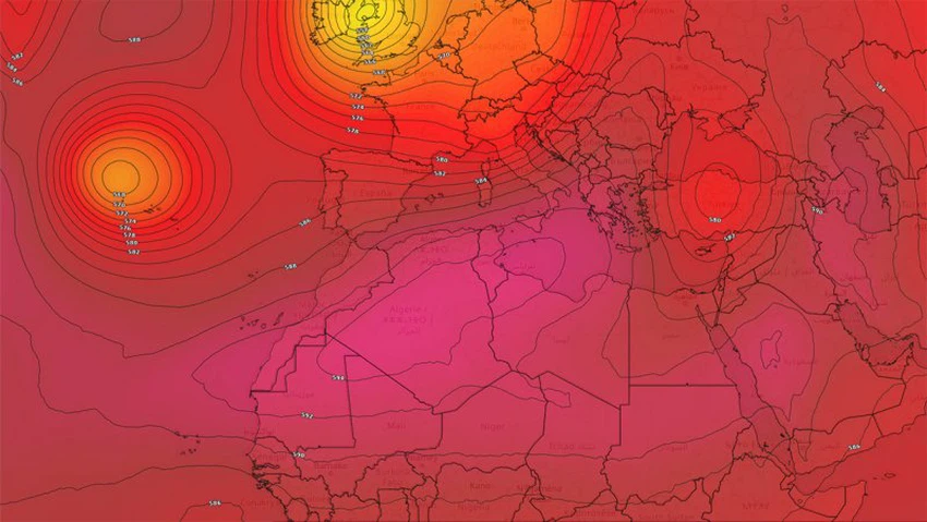 طقس العرب - يُتوقع أن يستمر تأثر الجزائر خلال نهاية الأسبوع بالأجواء الحارة والمرهقة، إثر سيطرة مرتفع جوي علوي فوق المنطقة يترافق بكتلة هوائية حارة، وبالتزامن مع ذلك يستمر تأثر الجزائر بأحوال جوية غير مستقرة نتيجة تعمق منخفض جوي صحراوي في الصحراء الجزائرية تندفع على إثره رطوبة مدارية في طبقات الجو المتوسطة والعالية لتنشأ أحوال جوية غير مستقرة في أجزاء من المنطقة الشمالية.