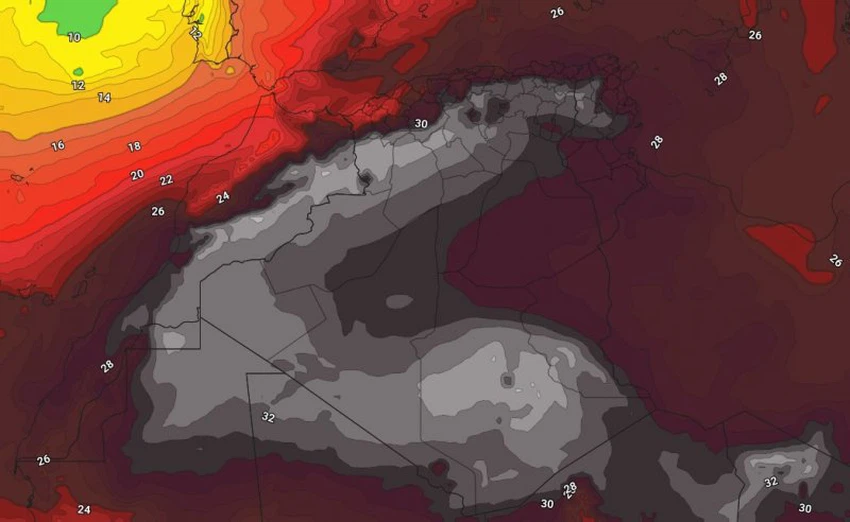 طقس العرب - تُشير آخر البيانات الجوية الواردة إلى طقس العرب إلى اشتداد متوقع في تأثير الكتلة الهوائية الحارّة على الجمهورية خلال عطلة نهاية الأسبوع، حيثُ ترتفع درجات الحرارة بشكلٍ إضافي، تزامناً مع سيادة أحوال جوية غير مُستقرة في أجزاء من جنوب الجزائر، بالإضافة لأجزاء من المناطق الداخلية الشمالية.