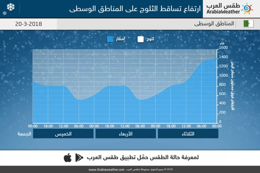 وتاليا توقعات ارتفاع تساقط الثلوج على المناطق الغربية ، الوسطى والشرقية اعتبارا من يوم الثلاثاء وحتى نهاية يوم الخميس.