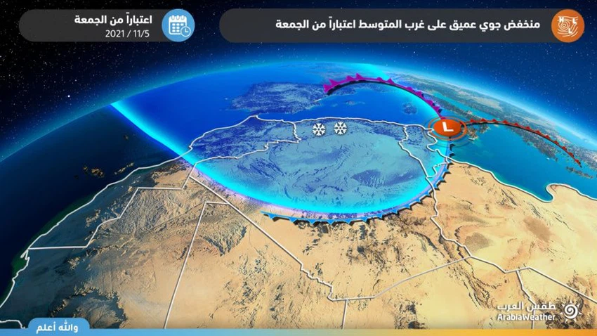 طقس العرب - تشير التوقعات الجوية لدينا في طقس العرب وبقوة إلى تأثر أجزاء واسعة من الجزائر وتونس بجبهة هوائية باردة خلال عُطلة نهاية الأسبوع، تجلب الرياح القوية وأمطار غزيرة، كما تترافق بانخفاض لافت وملموس على درجات الحرارة في العدي من المناطق، وهذه التفاصيل:
