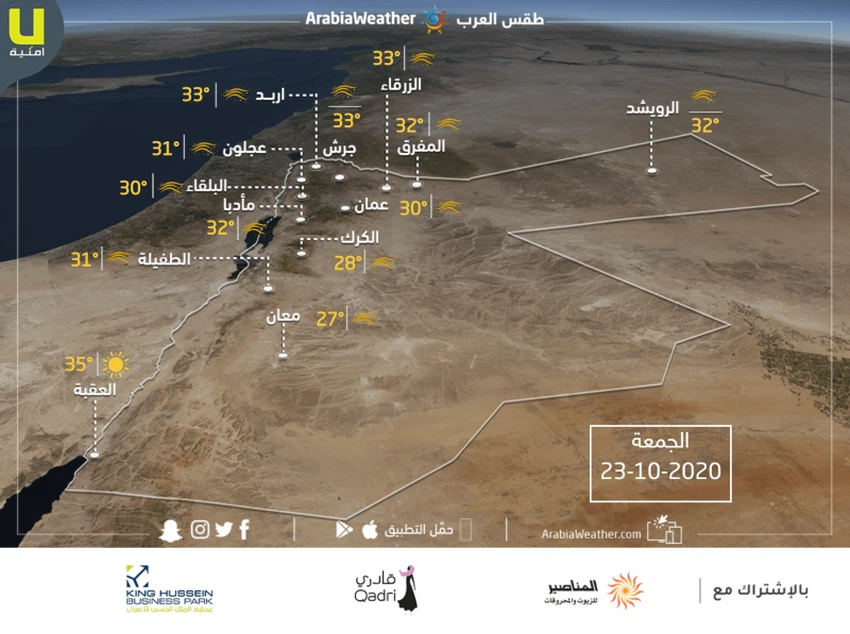 درجة الحرارة العظمى المتوقعة في الزرقاء: °33