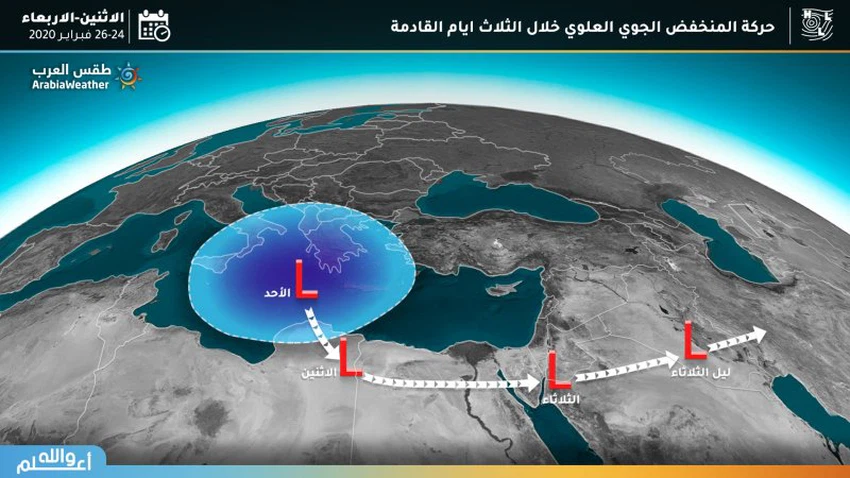 تبدأ حالة عدم الاستقرار الجوي على منطقة الحدود الشمالية على مرحلتين، حيث تبدأ زخات أمطار رعدية بالهطول على القسم الجنوبي من منطقة الحدود الشمالية بما فيها مدينة رفحاء مع ظهر وعصر الاثنين، وتستمر على ليل الاثنين / الثلاثاء.