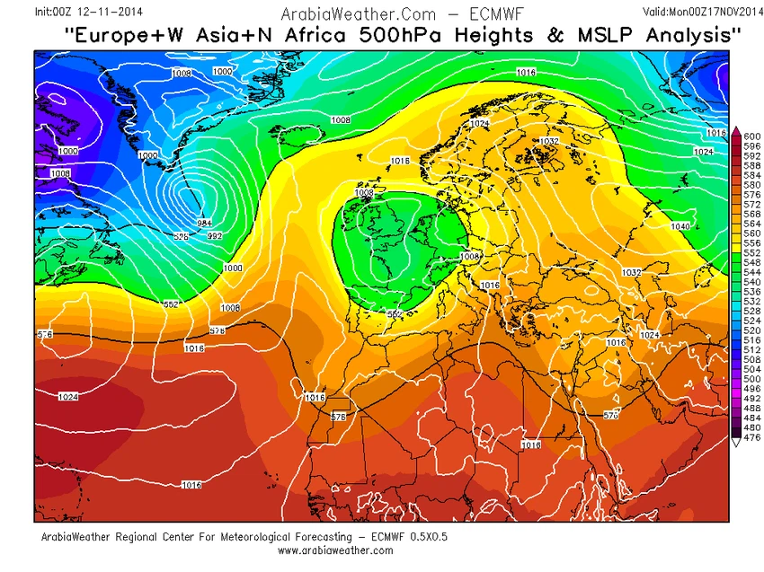 موقع Arabiaweather.com – حسن عبدالله – ما زالت المؤشرات من الخرائط الجوية التي يستلمها " مركز طقس العرب الاقليمي" على احتمالية مرتفعة لحالات جوية ماطرة والتي اشار اليها في نشرته الشهرية الصادرة في بداية نوفمبر، ولا يستبعد ان تكون الحالات قوية على بعض المناطق.