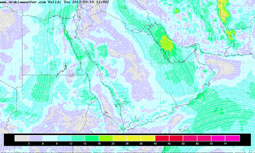 كذلك تنخفض سرعة الرياح مقارنة مع يوم الأربعاء، وينحصر نشاطها على شرق البلاد ومنطقة الخليج العربي مسببة الاضطراب للبحر و إثارة العوالق الترابية.