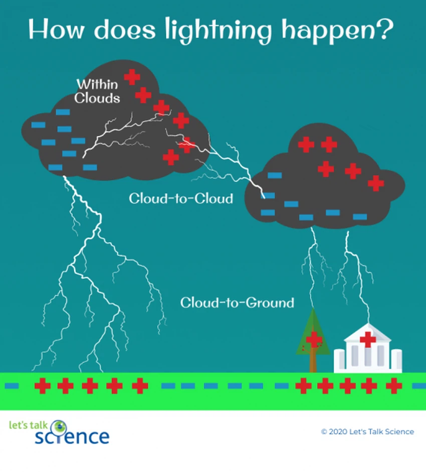 تحتاج العواصف إلى التيارات الهوائية الصاعدة والرطوبة حتى تولد البرق، إذ يتطلب توليد العواصف الرعدية إلى وجود حالة من عدم الاستقرار في الغلاف الجوي، لتكون هذه الحالة بمثابة المحرك الذي يشكل التيارات الصاعدة، وعندها تتصادم الجزيئات الموجودة في التيارات الصاعدة في الغيوم مع الجزيئات الهابطة، تصبح محملة بالشحنات، فتتجمع الشحنات السالبة أسفل الغيمة، وتتجمع الجزيئات الأصغر الموجبة في الأعلى، وعندما تتراكم الشحنات في الغيمة يتم تفريغها على شكل برق.