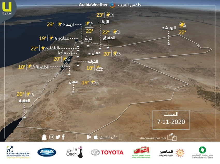 حالة الطقس ودرجات الحرارة المتوقعة يوم السبت في الأردن: