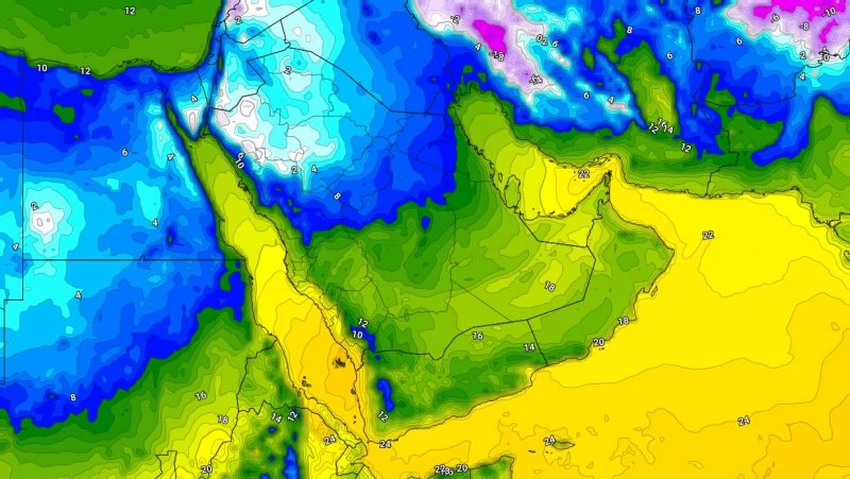 ذات الكُتلة الباردة ستؤدي إلى انخفاض حاد وكبير على درجات الحرارة يوم الخميس في "الجوف - تبوك - الحدود الشمالية - حائل - القصيم - حفر الباطن - المدينة المنورة"، على أن تتعمق بشكل اضافي يوم ليلة الخميس/الجمعة ويوم الجمعة لتؤثر بشكلٍ مُباشر على الشرقية والرياض وصولاً حتى الأجزاء الجنوبية من المملكة.