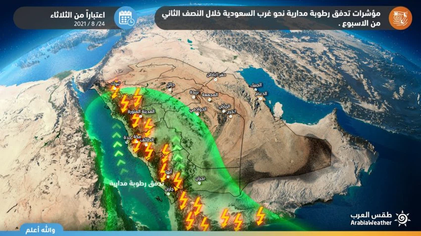 وبالرغم من بعد الفترة الزمنية للتدفق المداري المتوقع، إلا أن المؤشرات الأولية تعتبر ممتازة ومبشرة للغاية بشمولية الأمطار لمناطق باتت تعيش فترة من الجفاف والانقطاع المطري منذ دخول فصل الصيف، مثل منطقتي تبوك والمدينة المنورة، كما سينجُم عن هذا التدفق للرطوبة المدارية اشتداد واتساع في رقعة الأمطار على عموم المناطق الجنوبية الغربية من المملكة، مثل جازان وعسير والباحة، وتمتد حتى الطائف وربما أجزاء من مكة المكرمة.