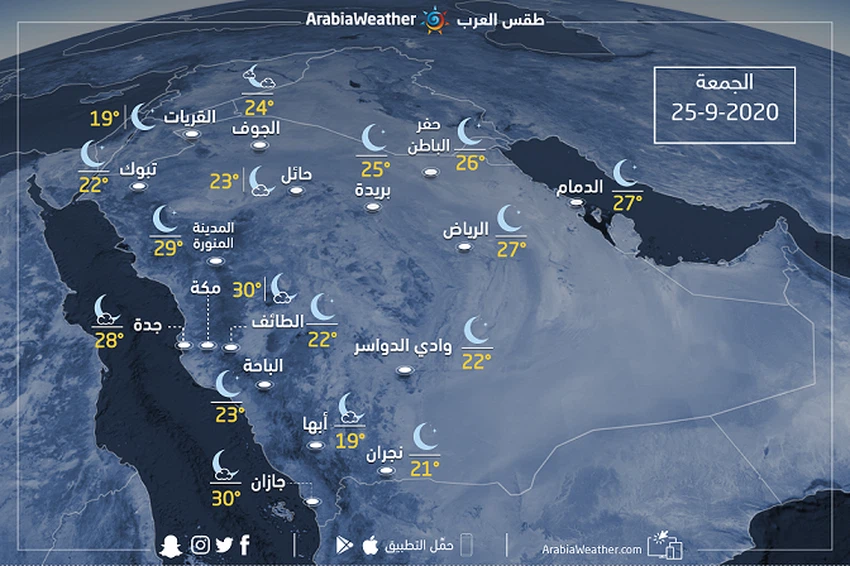 طقس العرب - حالة الطقس ودرجات الحرارة المتوقعة في المملكة العربية السعودية ليوم الجمعة 2020/9/25م