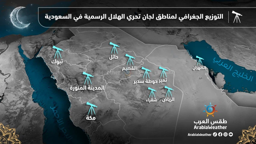 طقس العرب - تتحرى المملكة العربية السعودية منمراكز الترائي بعد قليل هلال شهر شوال - عيد الفطر - لتحديد ما إذا كان يوم الأحد هو المتمم لشهر رمضان، أم أنه سيكون أول أيام عيد الفطر السعيد 2022م