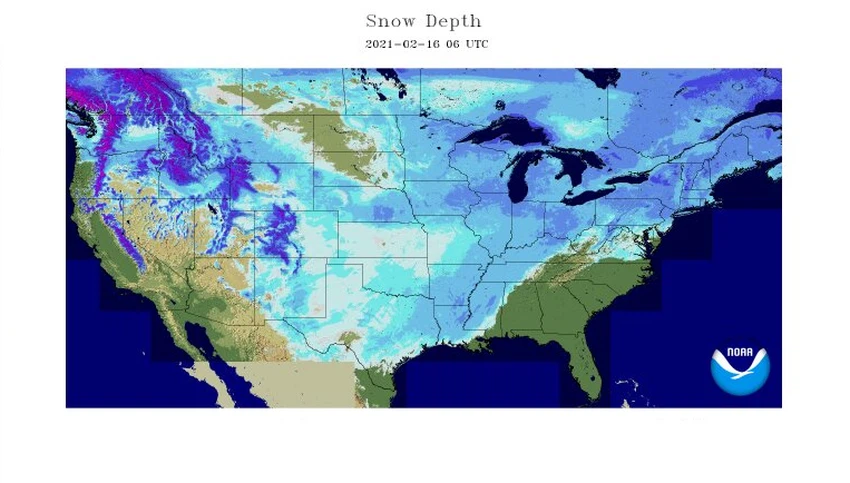 يوم السبت 13/2/2021 تأثرت الولايات المتحدة بالعاصفة الشتوية الذي أطلق عليها لاحقًا من قبل وسائل الإعلام بالعاصفة أوري، التي كان لها آثر على نطاق واسع في جميع أنحاء الولايات المتحدة وشمال المكسيك وأجزاء من كندا، ولعّل أبرز الظواهر الجوية المُصاحبة للعاصفة هي تساقط الثلوج على مساحة 73.2% من الولايات المُتحدة، حيث يُعتبر أعلى معدل للغطاء الثلجي منذ عام 2003 وفقًا لـ NOAA.