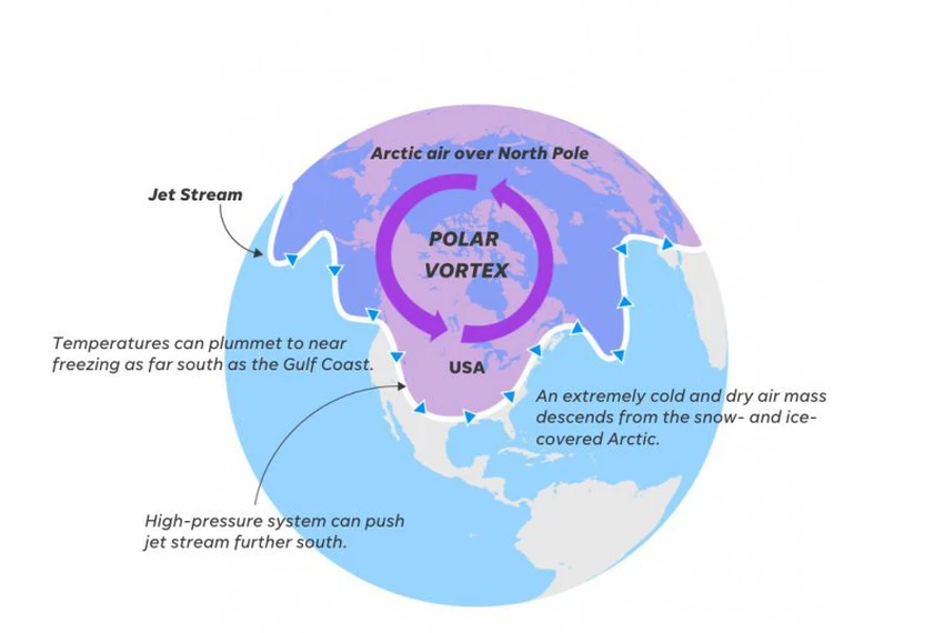 طقس العرب - محمد عوينة - تأثرت الولايات المتحدة بعواصف شتوية هي الأبرد منذ سنوات، تمثلت باجتياح عاصفة ثلجية من الساحل إلى الساحل مما أدت الى سيادة أجواء قارسة البرودة وسُجلت درجات حرارة قياسية في بعض الولايات، وهو ما نتج عنهُ ظروفًا خطيرة في معظم أنحاء البلاد بسبب تساقط الثلوج بكثافة وتكون الجليد ودرجات الحرارة المنخفضة بشكل كبير، ليس ذلك فحسب بل قُدرت الخسائر الاقتصادية الأولية بنحو 60 مليار دولار.