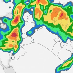 وتظهر كميات كبيرة من السُحب على ارتفاعات مختلفة في العديد من المناطق، مع هطول أمطار غزيرة على المناطق الشمالية والشرقية وتتساقط الثلوج بكثافة فوق القمم الشمالية العالية، ولا يُستبعد ان تمتد بعض من زخات المطر نحو أجزاء اضافيه بشكل عشوائي ومتفرق.