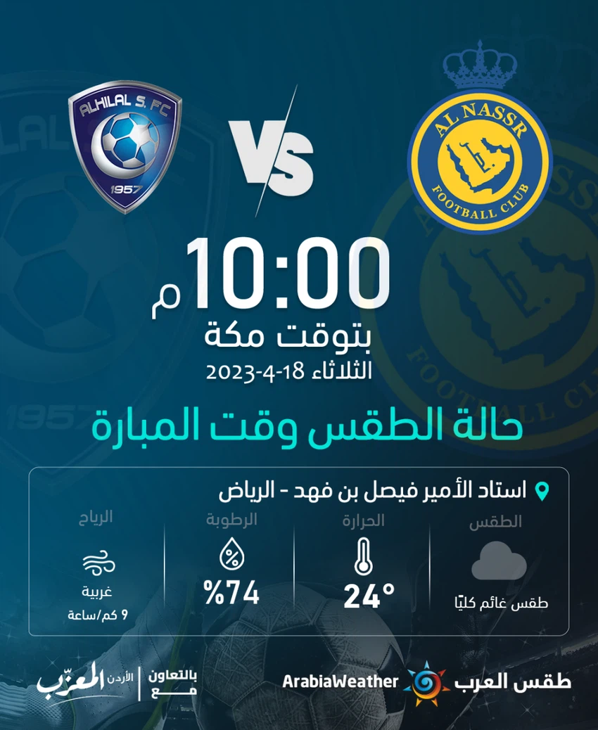 حالة الطقس المُتوقعة عند موعد مباراة الهلال والنصر