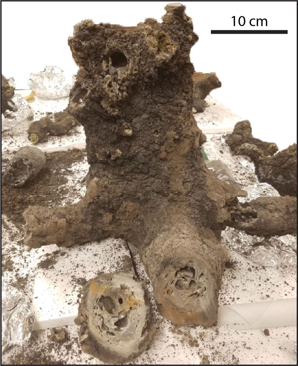 (صورة لعينة صخر "فولجوريت" التي تمت دراستها، والذي ينتج عن ضرب صواعق البرق للأرض)