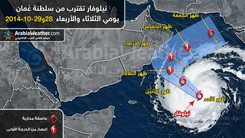 نيلوفار تقترب من سلطنة عمان وتتحول الى اعصار من الدرجة(1) يومي الثلاثاء والاربعاء