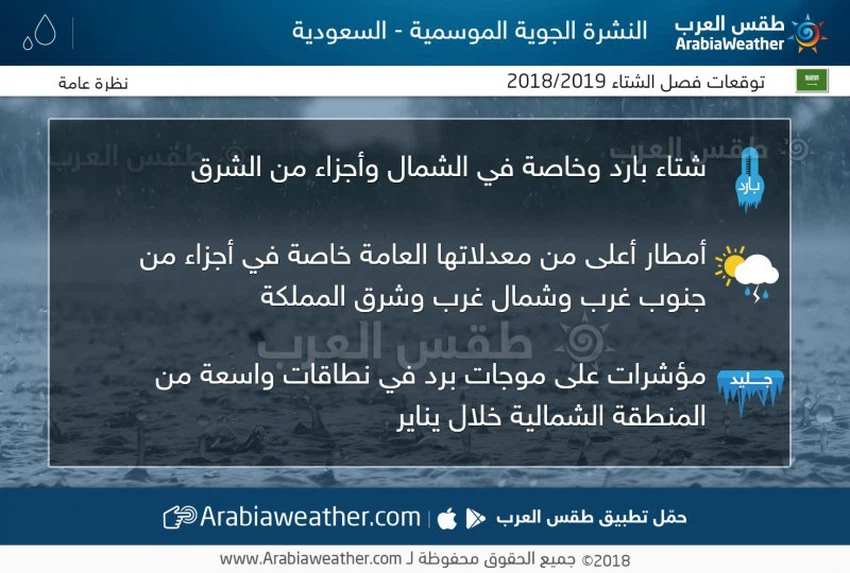 أبرز النقاط العامة المتعلقة بفصل الشتاء هذا العام 2018/2019: