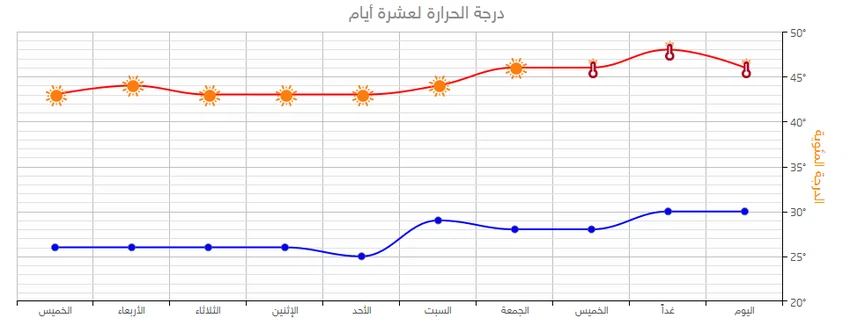 مسار درجات الحرارة المتوقعة في موقع المهرجان خلال الأيام الـ10 القادمة