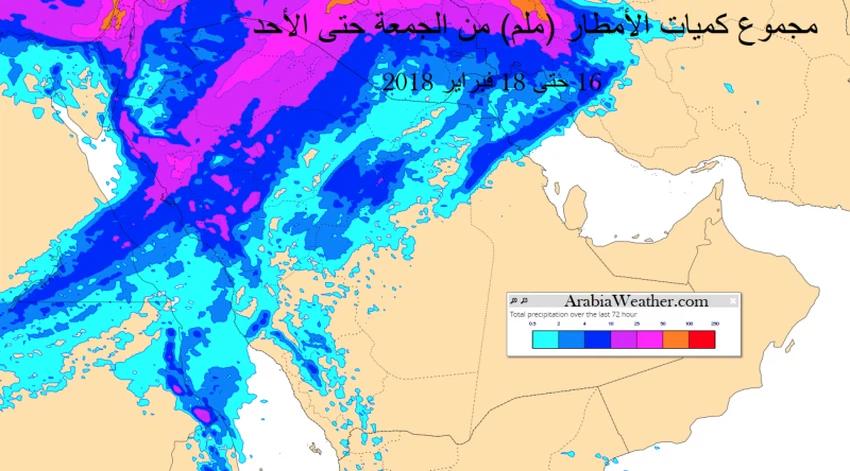 طقس العرب – م. ناصر حداد – من المنتظر أن تستقبل المملكة حالة من عدم الاستقرار الجوي  اعتباراً من نهار الخميس وحتى يوم الأحد 15 حتى 18 فبراير 2018، بحيث تجلب الأمطار على أجزاء مختلفة من البلاد خاصة المنطاق الشمالية والغربية من المملكة.